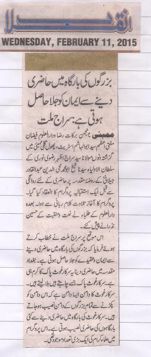 (Huzur Tajush Shariah- Alaihirrehmah, Kurla 02.2.2015)